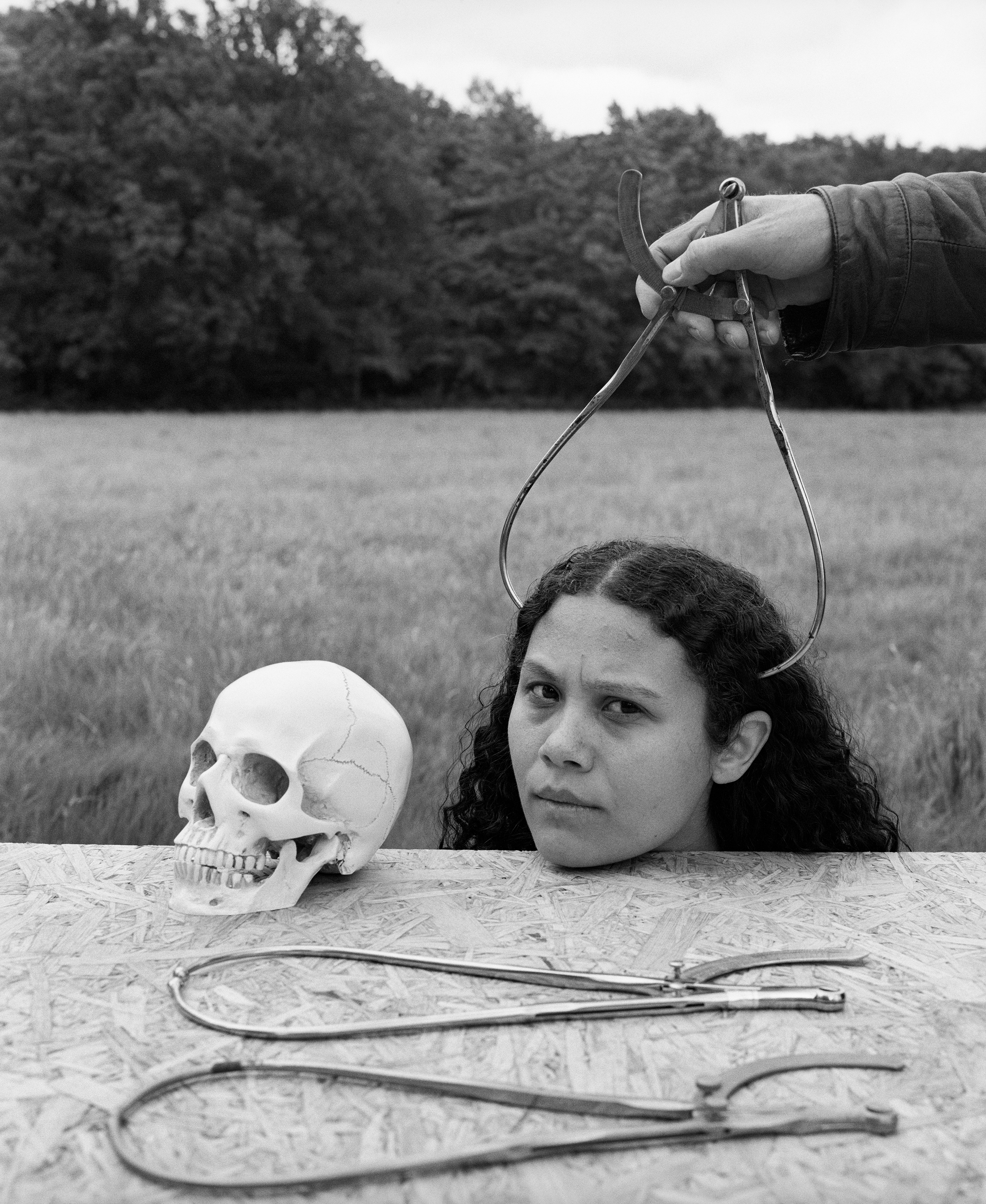 Van Wyk has made a conscious choice to employ the traditional visual idiom of black-and-white photography. In this seemingly grey area, she questions and redefines what it means to be a ‘person of colour’. The choice for black and white creates space for reflection on representation, visibility and history while also allowing her to work towards a personal and collective acceptance of a mixed identity. By developing her own iconography, Van Wyk creates her own mythology, a visual universe in which past and present, family history and social structures converge.